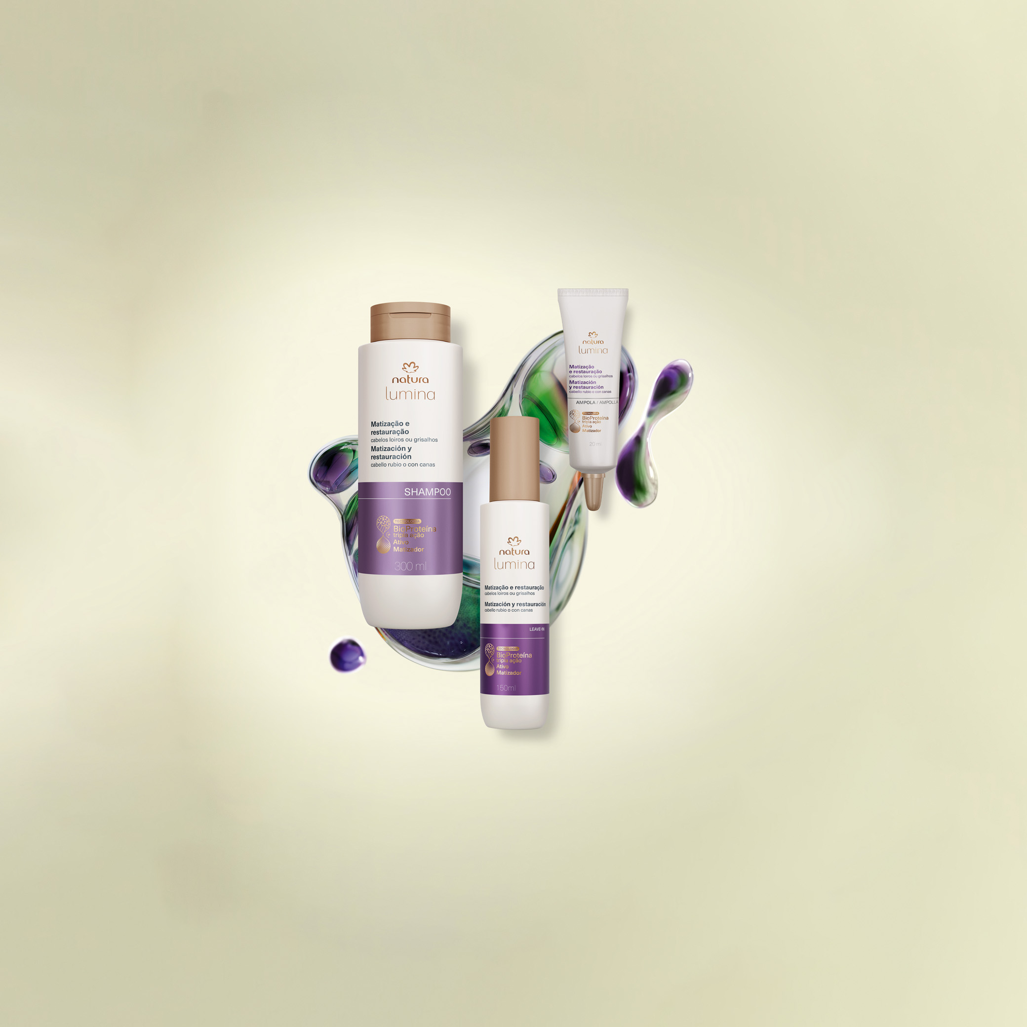 partículas con alta compatibilidad con el cabello, que penetran en la fibra capilar y son capaces de restaurar el color neutralizando los tonos amarillentos no deseados en cabellos rubios y canosos