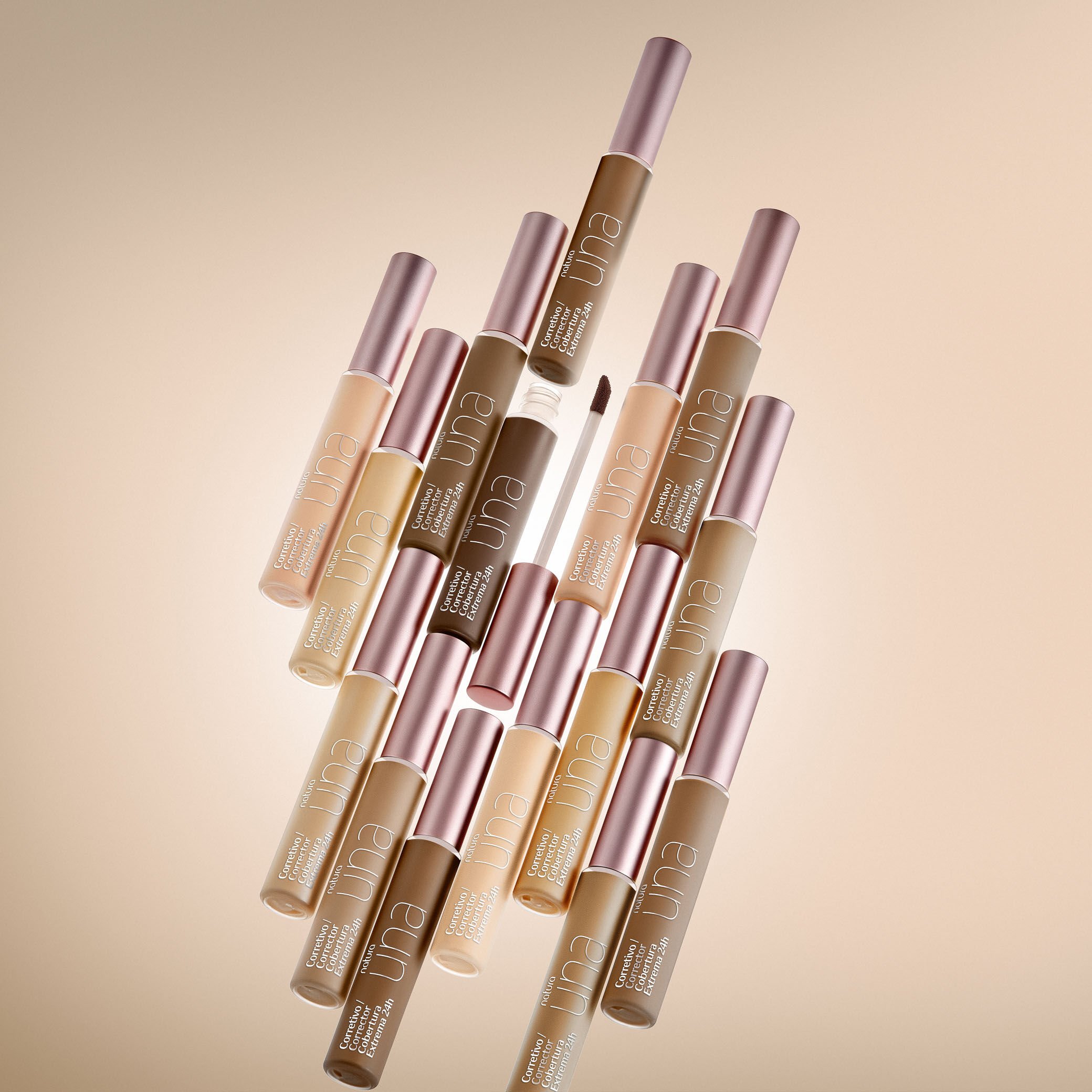 con textura ligera y confortable, el Corrector Cobertura Extrema Una es fácil de aplicar e ideal para quien busca un acabado impecable a lo largo del día.