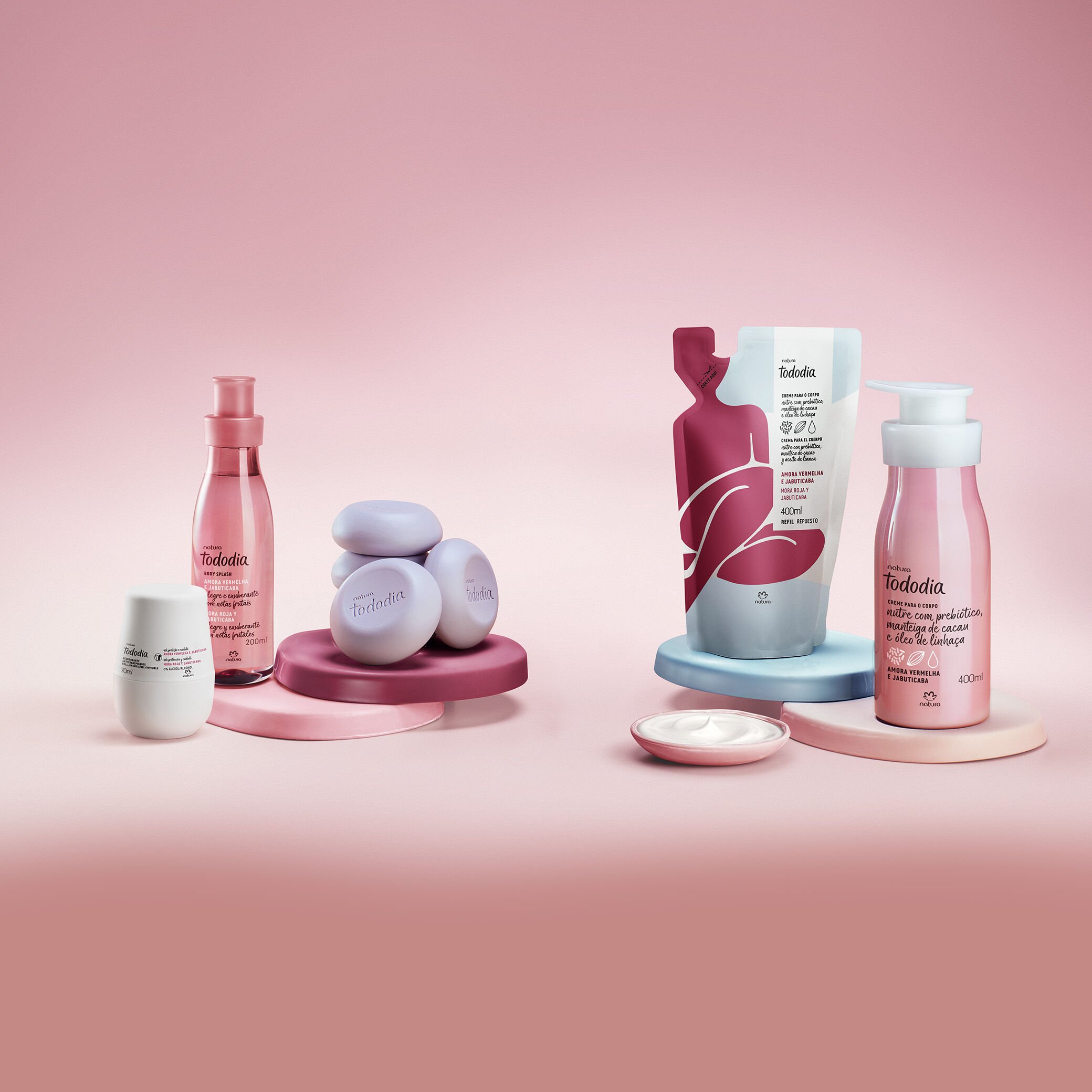 cuando la piel siente, todo el cuerpo reacciona. la piel nos reconecta con el presente y, al nutrirla, alimentamos también nuestro sentir. Tododia ofrece una línea de cremas nutritivas corporales con fragancias envolventes y texturas cremosas. además, incluye jabones en barra altamente vegetales con fragancias deliciosas, jabones líquidos para limpiar delicadamente la piel, desodorantes y productos para cuidados específicos