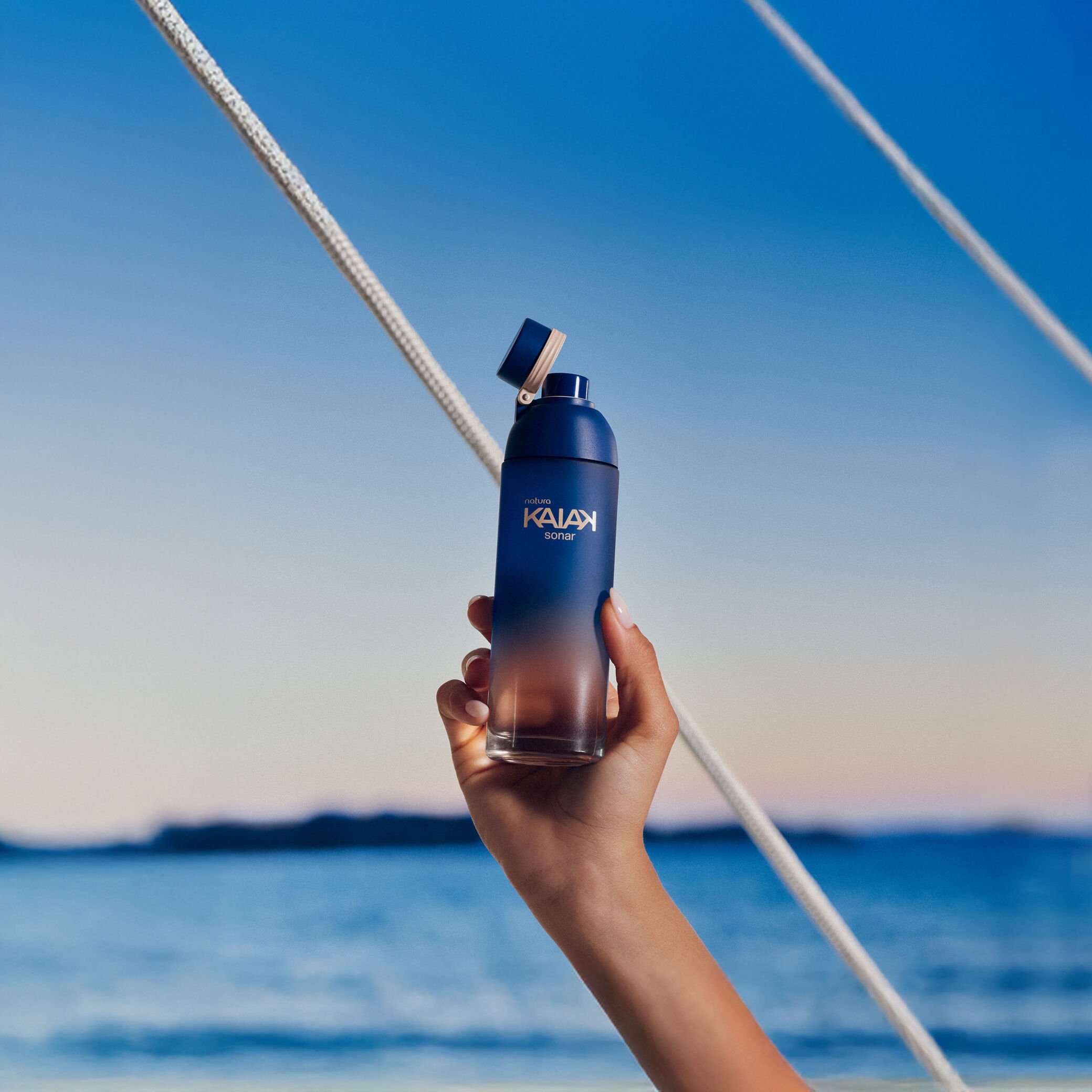 Kaiak Sonar Eau de Toilette Femenino tiene un camino olfativo floral frutal moderado, con notas marinas que contrastan con un toque salado de brisa oceánica.