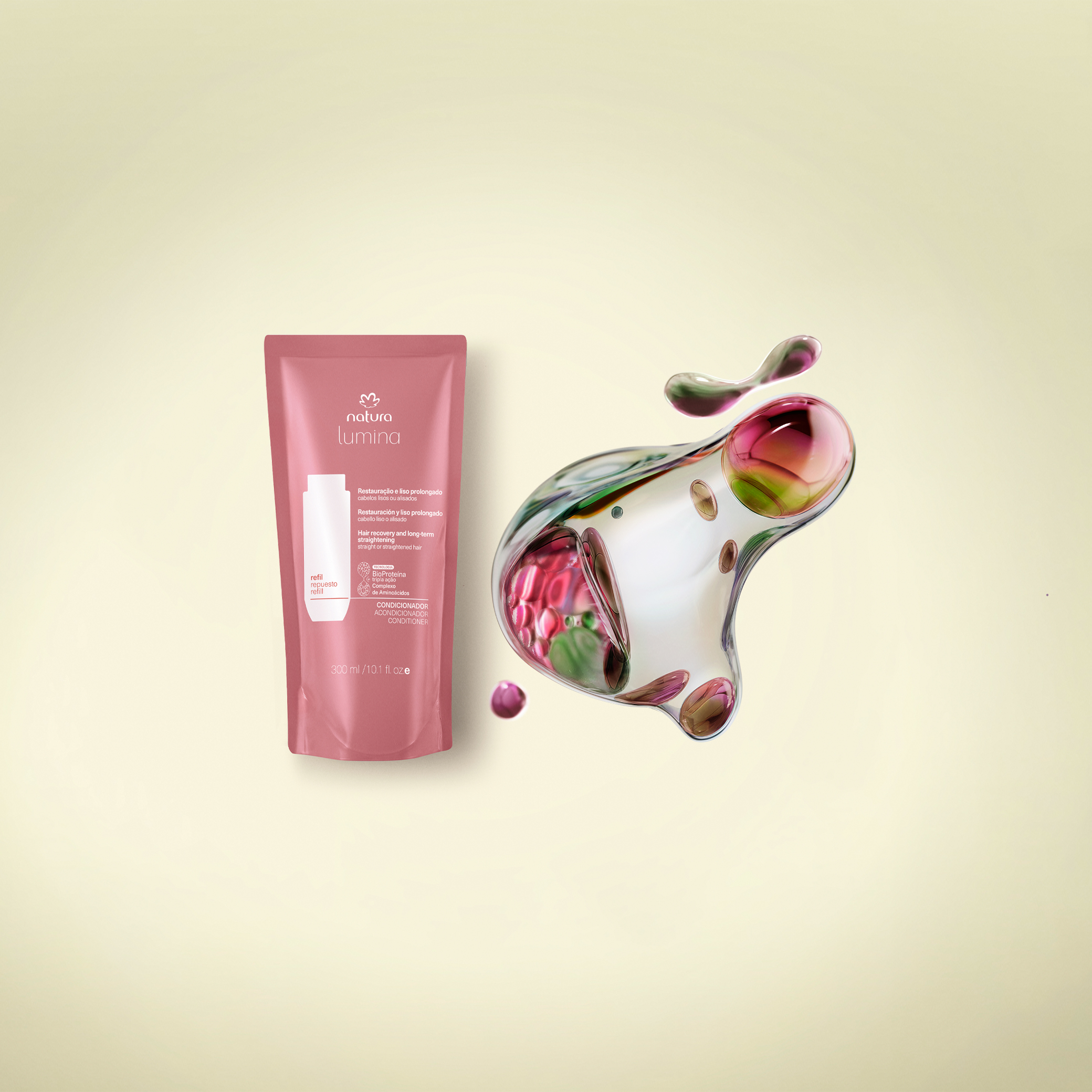 después de lavar el cabello con el shampoo Lumina, aplica el acondicionador en el cabello mojado, evitando la raíz. deja actuar por 1 minuto y enjuaga.
