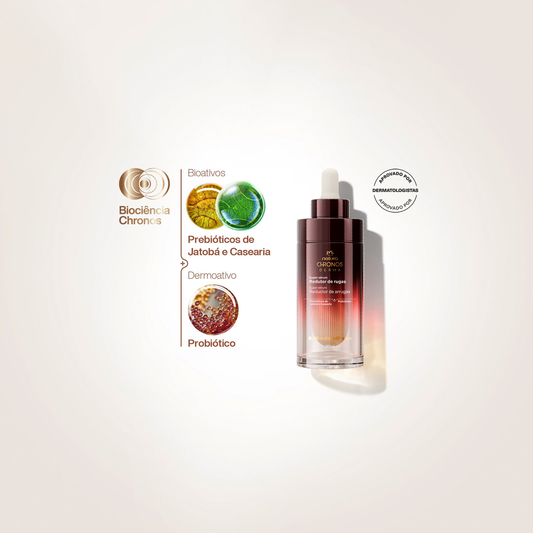 unión de potentes bioactivos de la naturaleza y dermoactivos para cuidar tu piel. los bioactivos prebióticos de Jatobá y Casearia aumentan la producción de colágeno, elastina y ácido hialurónico. por su parte, el dermoactivo probiótico aporta 125 millones de porciones probióticas que fortalecen la microbiota de la piel